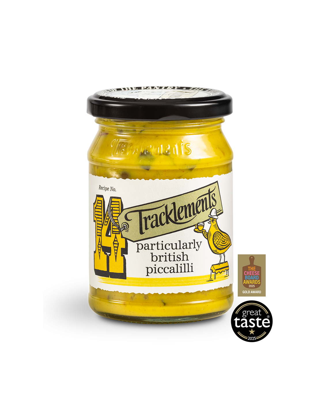 Pickled Vegetables (55%) (Cauliflower, Gherkins, Silverskin Onions, Red Peppers, Water, Acidity Regulator: Acetic Acid, Salt, Firming Agent: E509, Preservative: E223 (Sulphites)), Mustard (21%) (Water, Mustard Seed, Spirit Vinegar, Salt, Turmeric), Cider Vinegar, Raw Cane Sugar, Water, Sea Salt, Cornflour, Turmeric, Mustard Flour.
