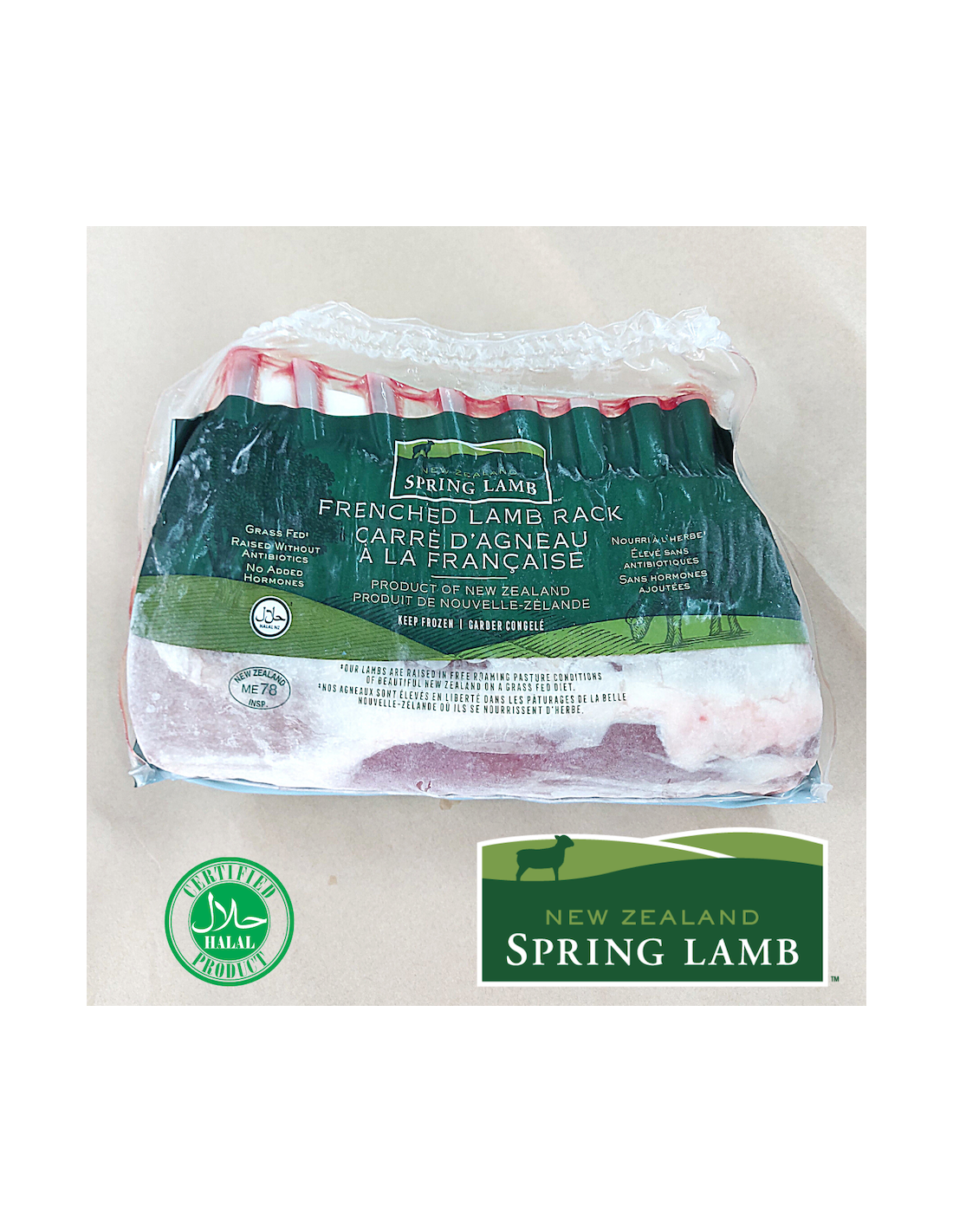 New Zealand Grass Fed French Cut Lamb Rack (8 ribs)